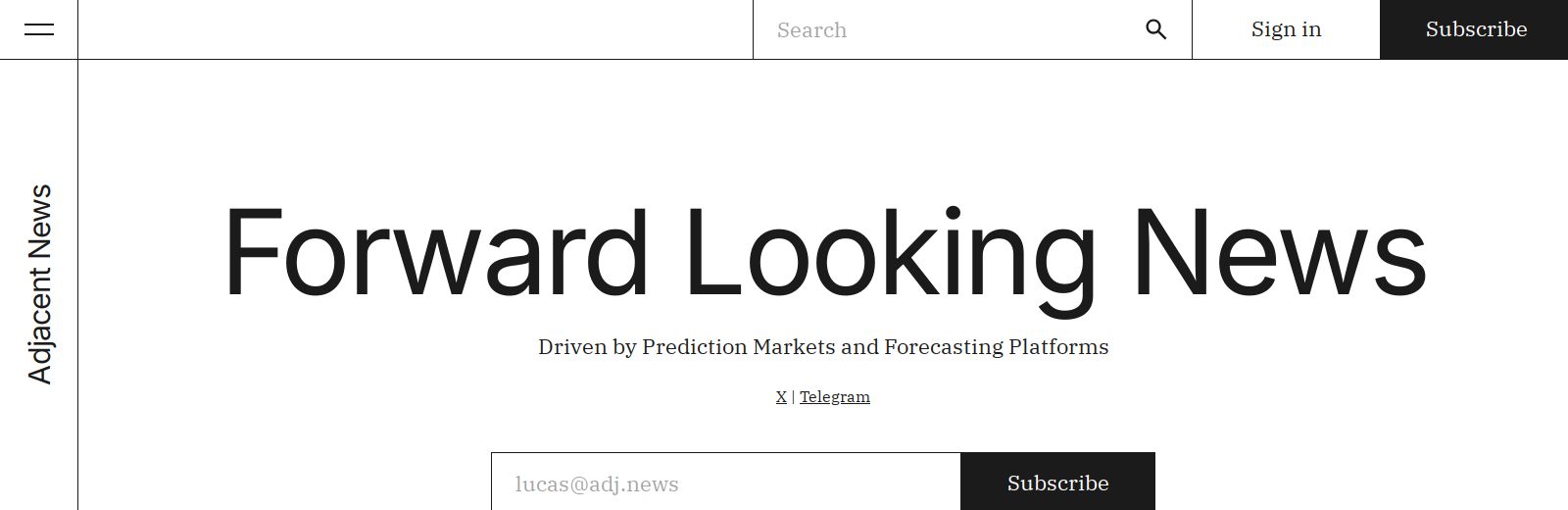Forward-looking news platform driven by prediction market data; publishes articles accompanied by live probabilities.