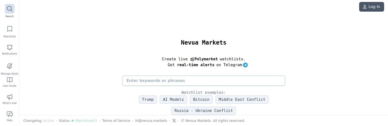 Dynamic watchlist and alert tool enabling users to create custom watchlists for Polymarket markets and set real-time alerts.